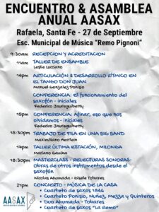 Compartimos la grilla de actividades del próximo encuentro de AASAX en Rafaela (Santa Fe)
