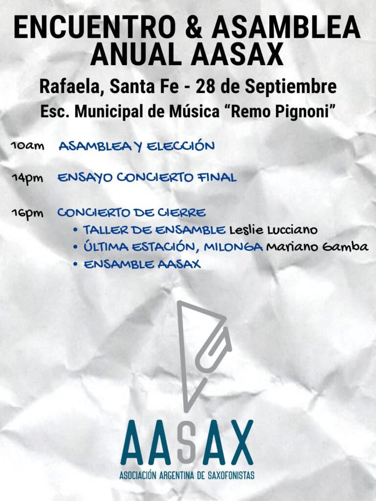 En el marco del Encuentro anual de la AASAX, y en la querida Remo, la cita busca potenciar la escena del saxofón en la región y seguir celebrando el amor por la música que nos une.