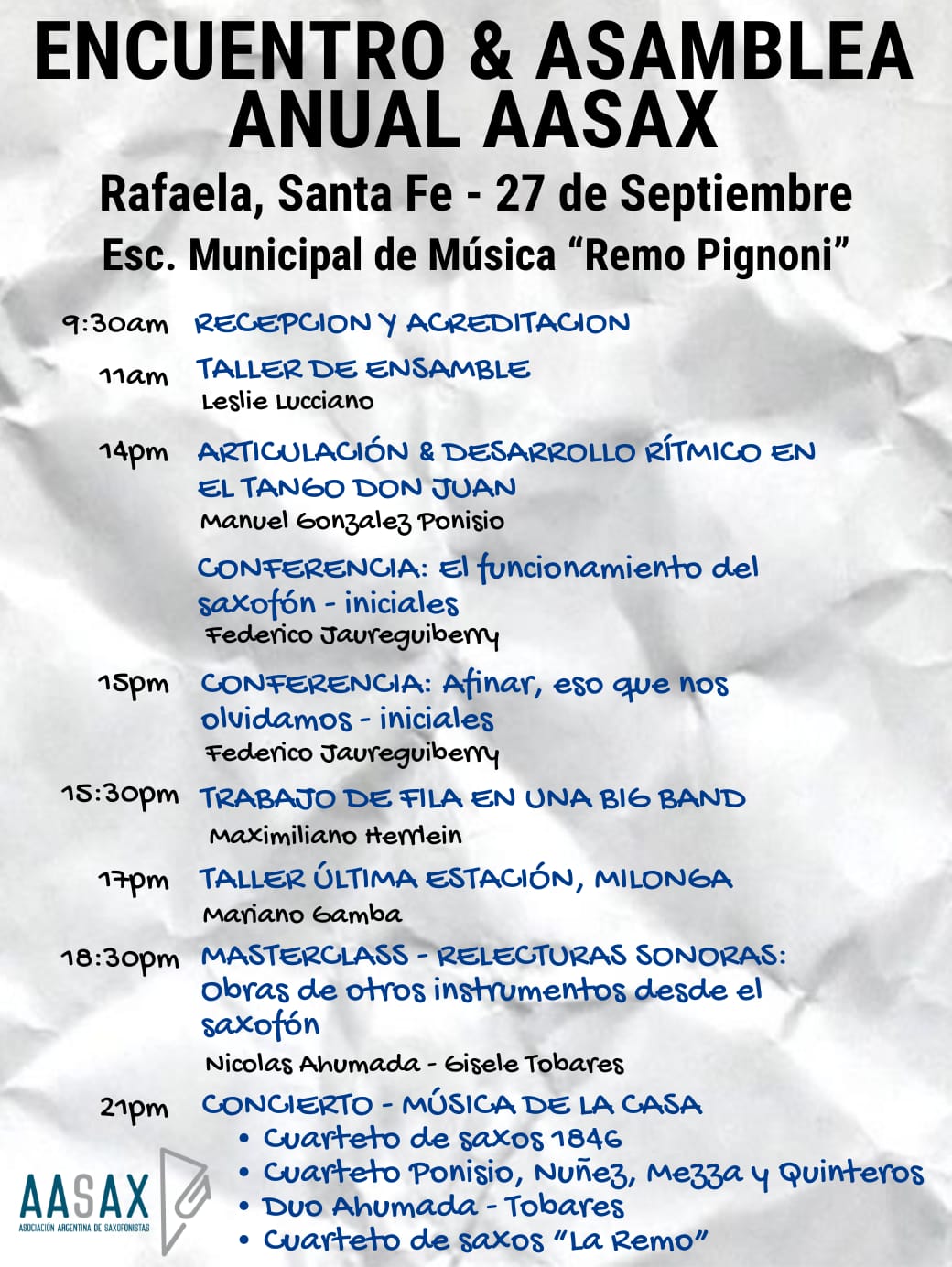 Compartimos la grilla de actividades del próximo encuentro de AASAX en Rafaela (Santa Fe)